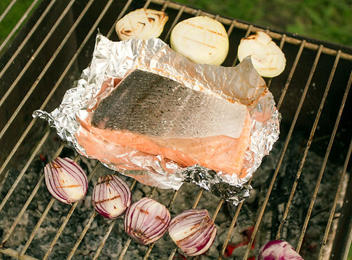 Slide the aluminum tray onto the grill. Tent by placing an 18" piece of foil over the fillets so the foil is resting on the surface of the fish.